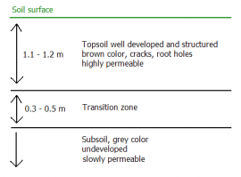 The typical properties of the levee soils are shown in Figure 4. There is a well developed topsoil with a thickness of more than 1 m through which the subsurface irrigation water can move in and out with relative ease.