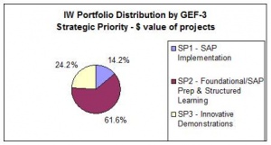 The 25 projects reporting to the 2007-2008 IW PIR represent total GEF financing of $159.8 m. supported by co-finance of $510.6 m. (co-finance at time of CEO endorsement). The active portfolio supports each of the GEF-3 Strategic Priorities with the largest portion of projects and financing allocated to SP2, Foundational projects, including portfolio learning: