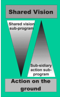 Focusing on a process-oriented approach, the NBI firstly sought to establish a common point of departure for all stakeholders, namely the NBI “Vision.” This aimed at framing the tasks to be institutionalized within subsidiary action programs (SAP) at a sub-basin level. These SAPs aimed to “identify and implement investment projects that confer mutual benefits at the sub-basin level and that the riparians agree to pursue cooperative [activities]” (NBI, 2000).